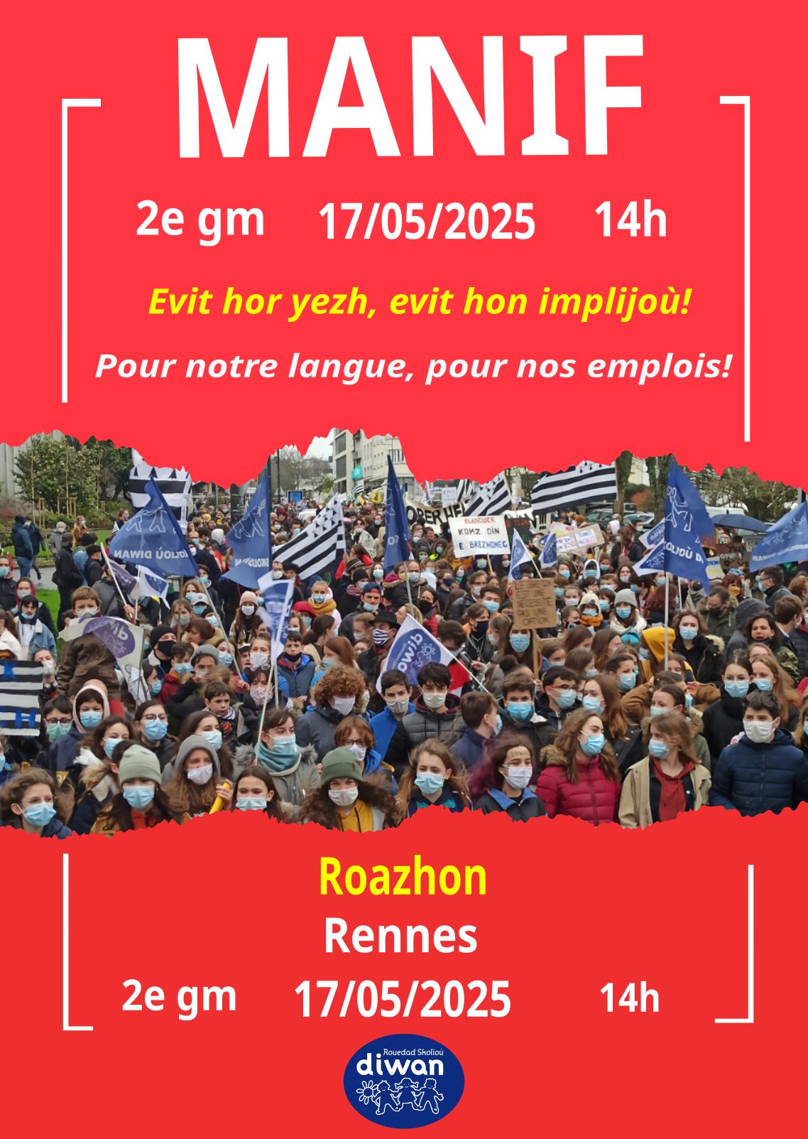 C’est pourquoi nous appelons tous les membres et sympathisant·es de Diwan à une mobilisation à Rennes le 17 mai à 14h.