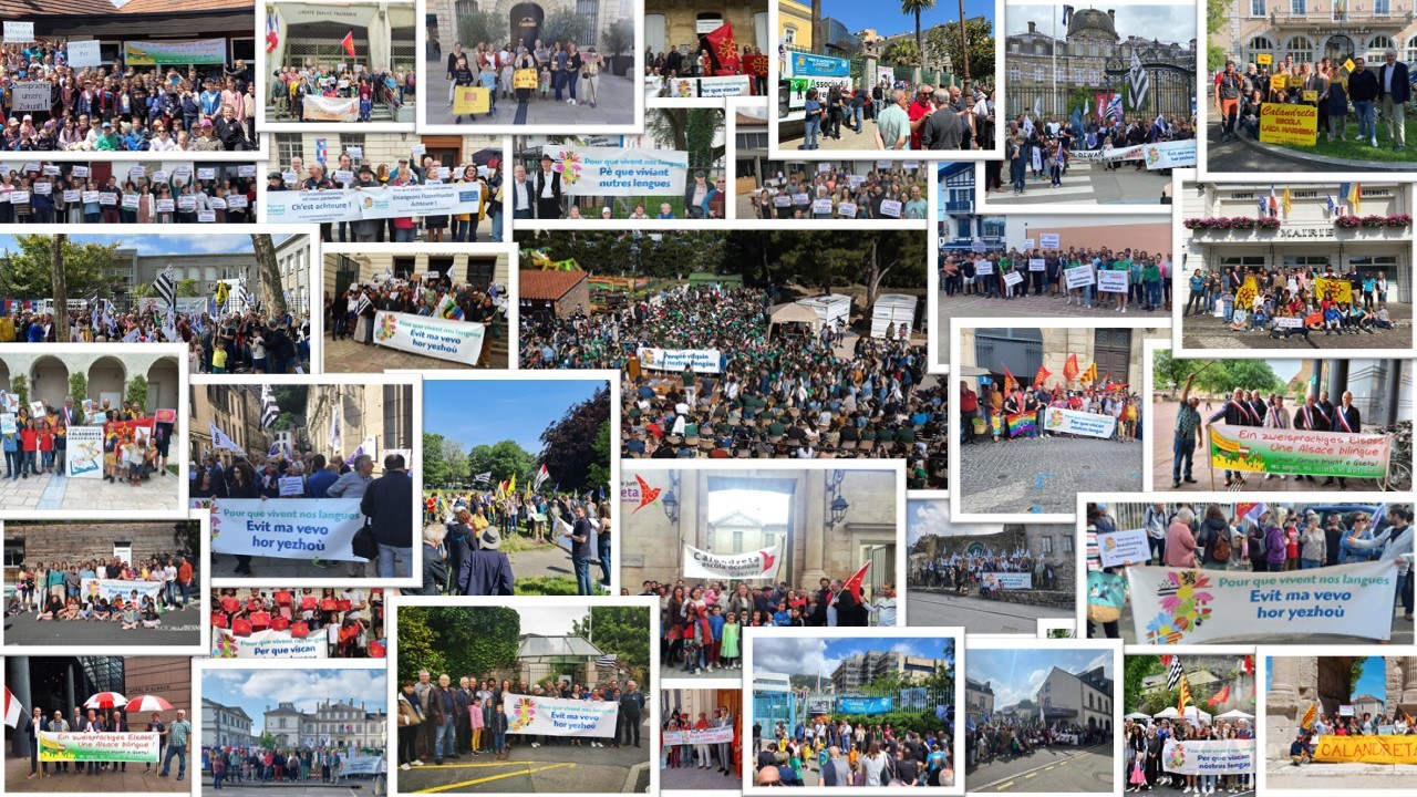 À quelques jours des élections européennes, ces rassemblements ont regroupé des milliers de personnes, enseignant.es, enfants, parents, élus, citoyen.nes, attaché.es à la diversité linguistique de notre pays pour dénoncer le statut précaire de nos langues régionales et demander une réforme de l’article 2 de la Constitution. Ces rassemblements ont été largement relayés dans la presse locale et nationale.