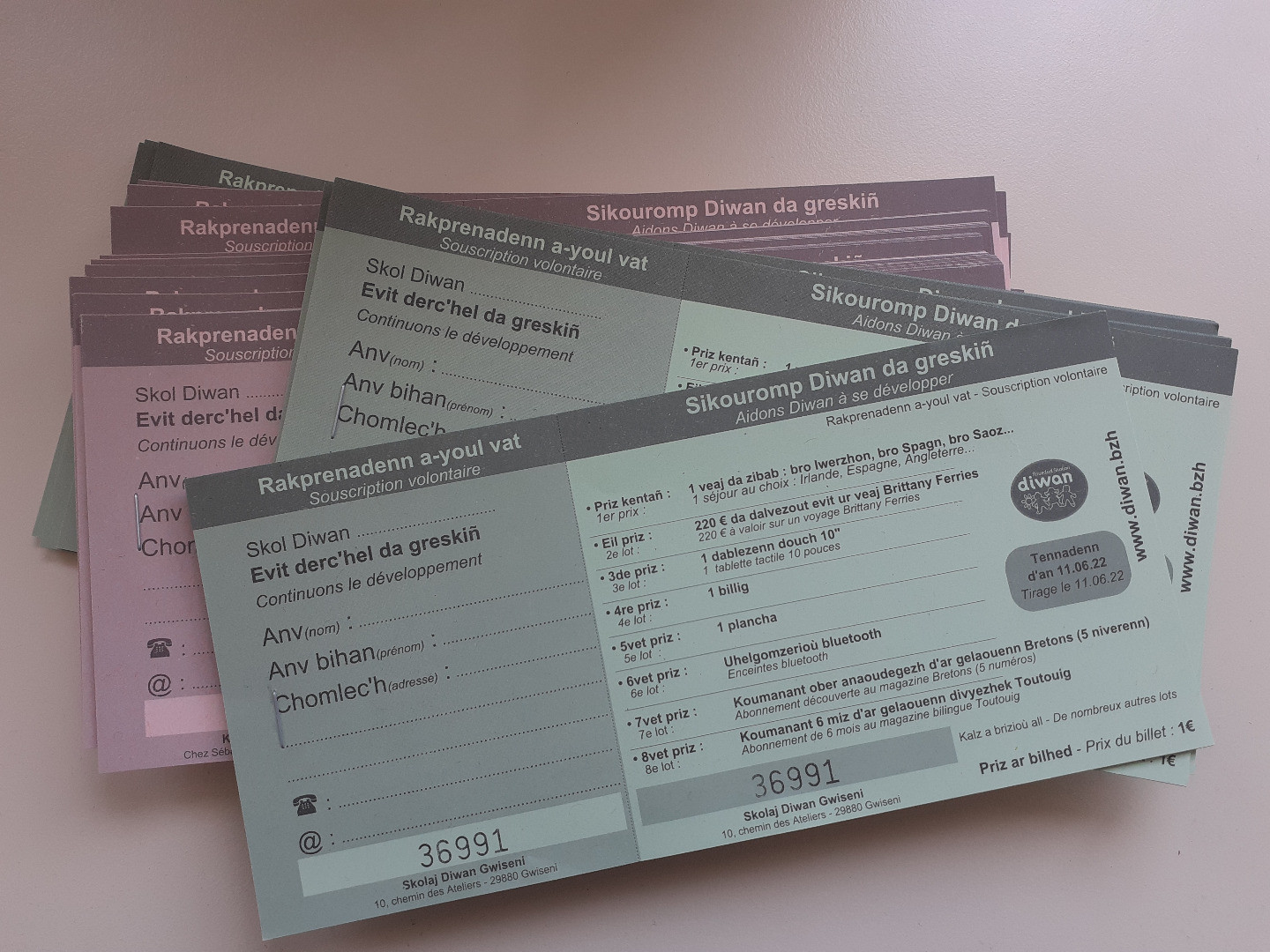 Le tirage au sort de la tombola Diwan 2022 a eu lieu lors de la réunion du conseil d'administration du 11 juin. 80 000 tickets ont été vendus* ! Bravo aux écoles, aux collèges, aux lycées, et à toutes les personnes qui ont contribué. Félicitations aux gagnants et merci à tous les participants.