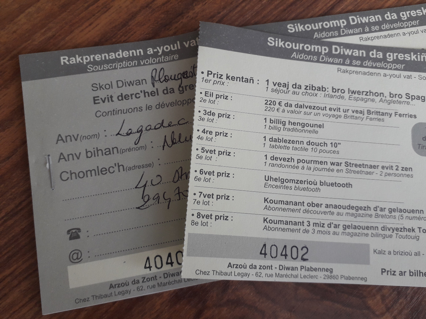Prizioù Tombola 2020 |